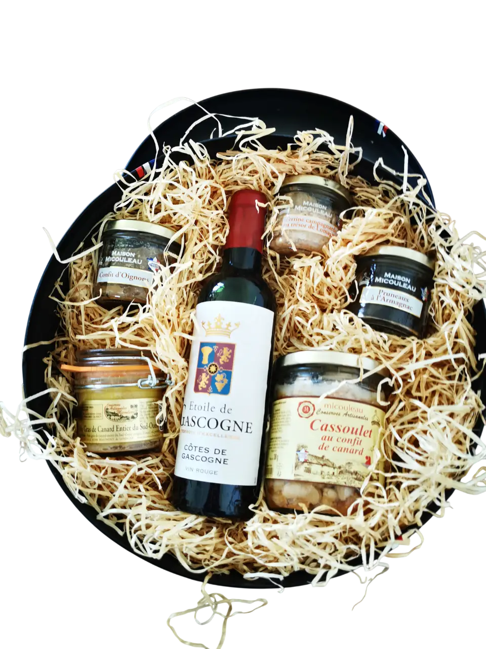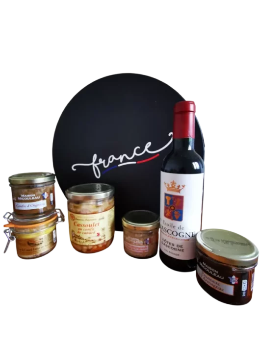 Entre foie gras de canard entier, terrine artisanale, douceur sucrée à l’Armagnac, cassoulet traditionnel et bouteille de vin rouge, cette composition promet un véritable moment de plaisir et de convivialité.